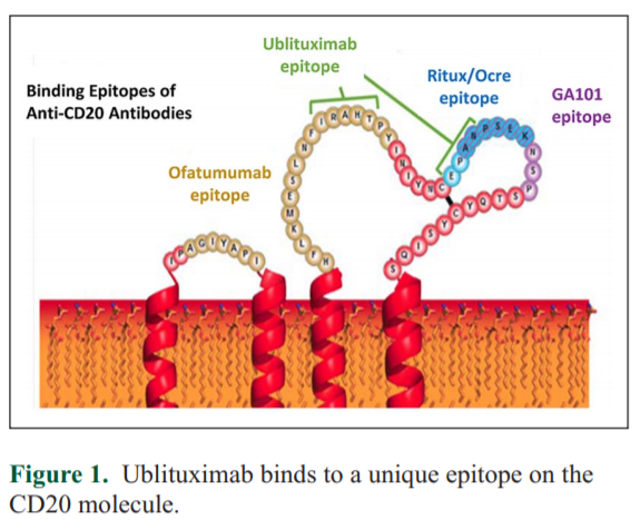 ublituximab为TG Therapeutics开发的一种靶向CD20shagn独特表位的糖化工程单克隆抗体,作用机制与已获批的抗CD20单抗相似。ublituximab通过岩藻糖修饰,大幅度提高了ADCC活性,增加了ublituximab效力。