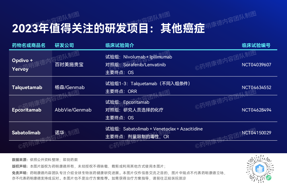 昨日,我们回顾了今年可能获批的十大潜在重磅疗法。今天,我们来一起展望2023年值得关注的临床试验。日前,Evaluate发布了一份报告,盘点了26项预计在2023年取得结果的临床开发项目,共包含32项临床试验。在今日的这篇文章中,药明康德内容团队也将按照疾病类型,为各位读者朋友们介绍这些在研疗法。