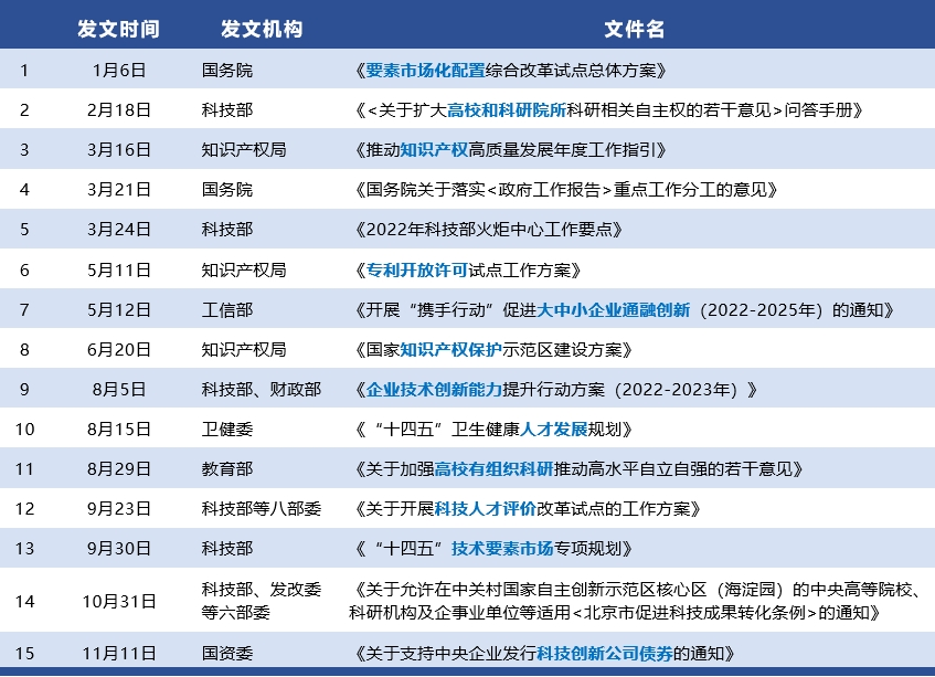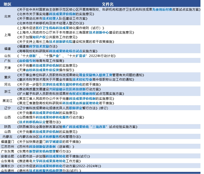 一、2022年从中央到地方,密集发布五十余项成果转化政策