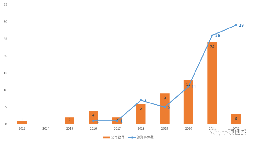 回溯这些公司的成立、融资时间,发现在2020-2021年成立、融资数目显著增多(图1)。