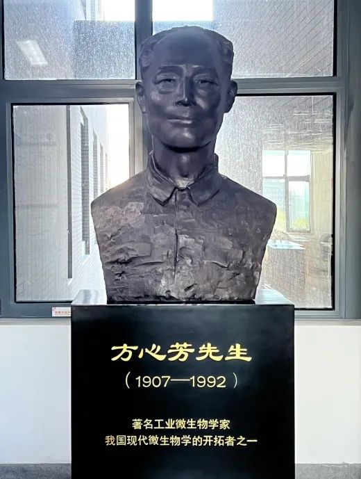 天津工业生物所是在中科院微生物所研发基地的基础上建立起来的。微生物所有着悠久的历史,是我国建国后建立的学科全、人才强、水平高的重要国家级微生物研究机构,可以追溯至20世纪50年代。早在1954年,中科院高层领导和专家开始酝酿组建微生物所,1958年 12月3日,中科院微生物所正式成立,由中国科学院应用真菌研究所和中国科学院北京微生物研究室合并而成,戴芳澜院士任所长,方心芳院士是副所长之一。正是微生物研究所雄厚的科研实力,先后有11位研究人员当选中国科学院院士,也是我国第一篇Cell (1980年) 文章的诞生地[2]。方心芳先生是我国工业(微)生物技术的先驱,研究所两个机构合并成立时他是北京应用微生物研究室的负责人 (副主任),担任副所长的同时也兼任工业微生物室主任,一直主导微生物研究所的工业微生物研究,并持续领导全国工业微生物研究的发展,使得微生物所保持了持久的创新活力。方心芳院士继承了他的先辈们诲人不倦的精神,十分注意培养人才。他还是中国科学院菌种保藏委员会主任,微生物研究所拥有亚洲最大的微生物菌种保藏库,这个保藏库为我国微生物生物技术的发展提供了重要的支撑。回顾历史,20世纪80年代,微生物所两步发酵法生产维生素C的专利曾经创下我国单笔技术转让费 (转让给国外跨国公司) 的最高纪录[3],凸显微生物所在工业生物技术领域的深厚积淀。正是有了方心芳院士这一代科学家的辛勤耕耘,才有了我们研究所的发展和天津工业生物所的建立。喝水不忘挖井人,追述先人功绩德行,启发后人。2007年,在我任所长的时候,正逢已故方心芳院士百年诞辰纪念日,我们组织了纪念活动,并决定制作方心芳雕塑 (图3),纪念这位伟大的工业生物技术先驱。