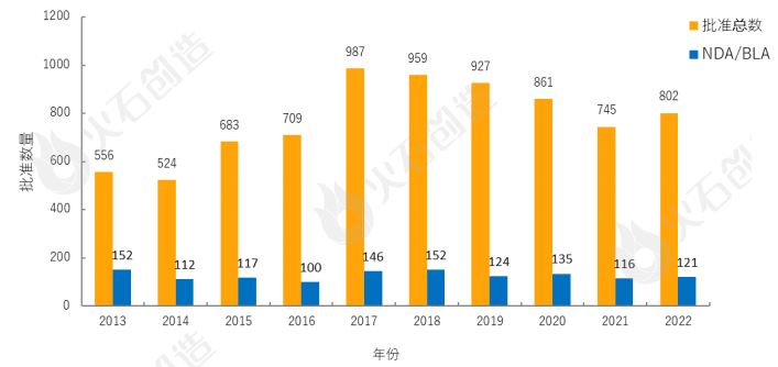 图1 2013—2022年FDA药物批准数量变化情况 来源:美国食品药品监督管理局