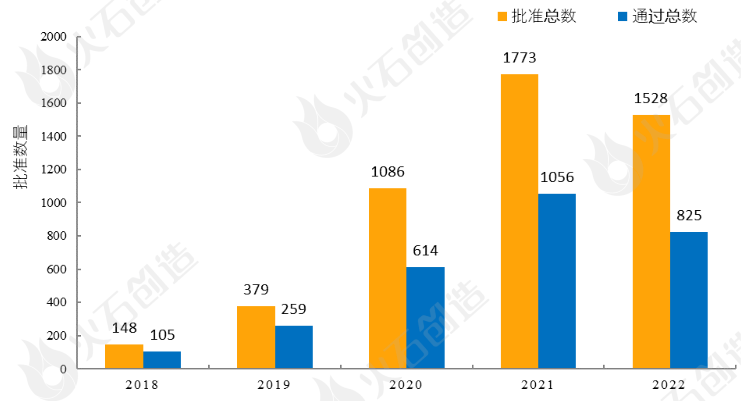 图4 2018年至2022年仿制药一致性评价批准数量变化情况 来源:国家药品监督管理总局