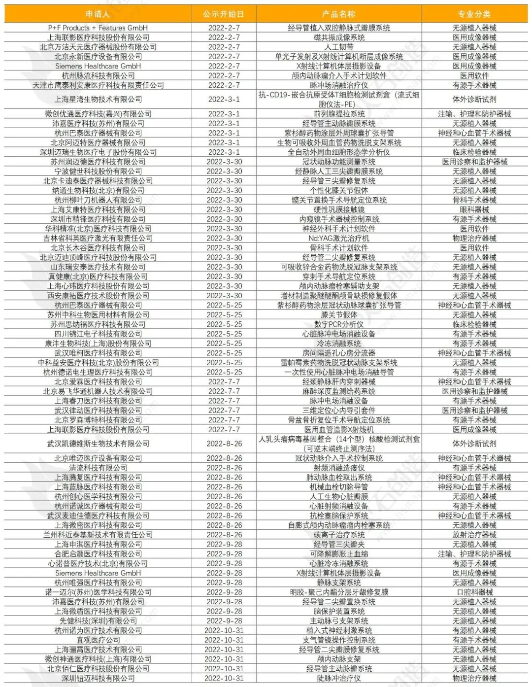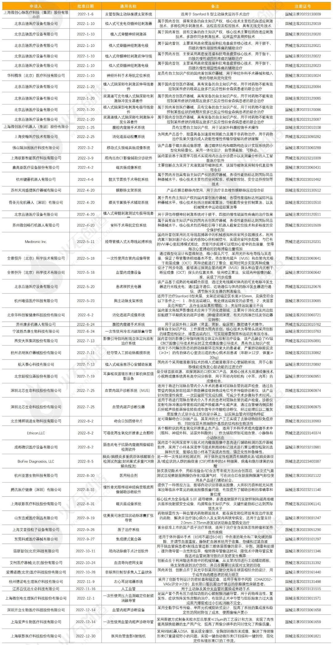 截至2023年1月5日,2022年国家局公示了67个三类医疗器械进入创新审批绿色通道,见表6。