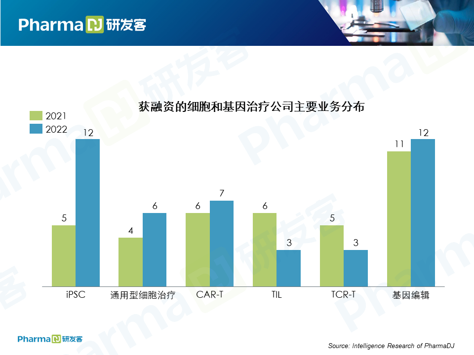 一系列CAR-T细胞产品的成功上市也激发了企业的研发热情。当前在研阶段的细胞和基因治疗产品中,CAR-T细胞产品占据了相当的比重,也吸引了不少投资。不过,除此以外,一些尝试更新技术的公司,特别是iPSC(诱导性多能干细胞)治疗和基因编辑的公司,在国内受到更多投资者的关注。2022年获得融资的iPSC公司相对前一年有了显著的增长。