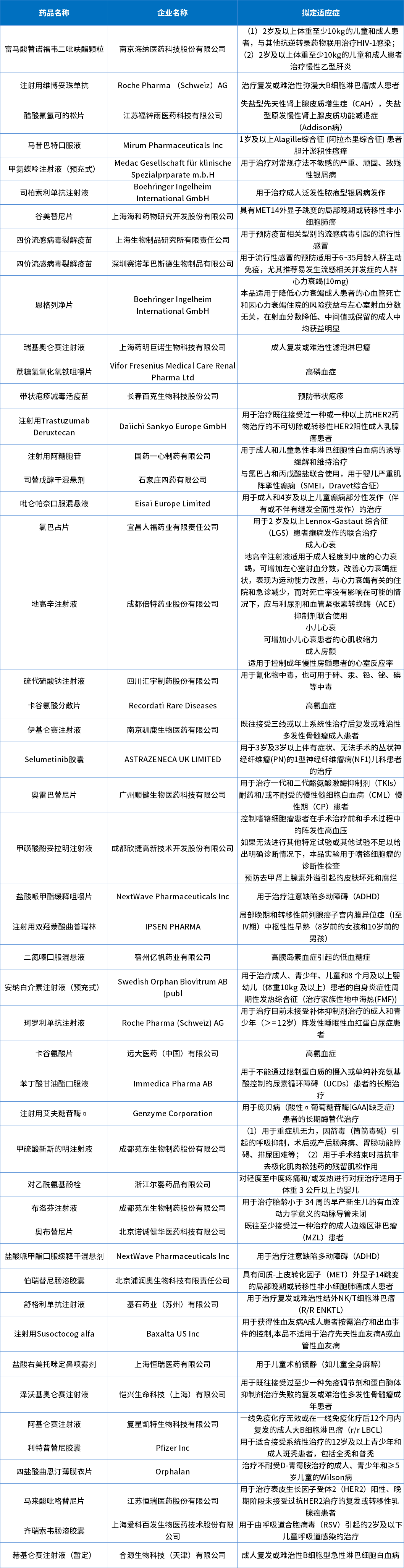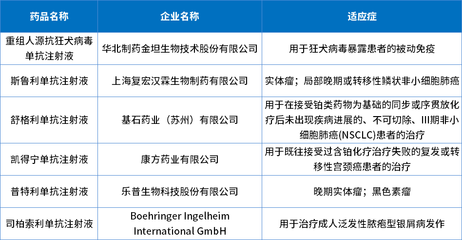 表5 2022年批准生物制品创新药