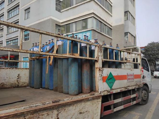 △住院大楼下,货车拉来了半车氧气瓶