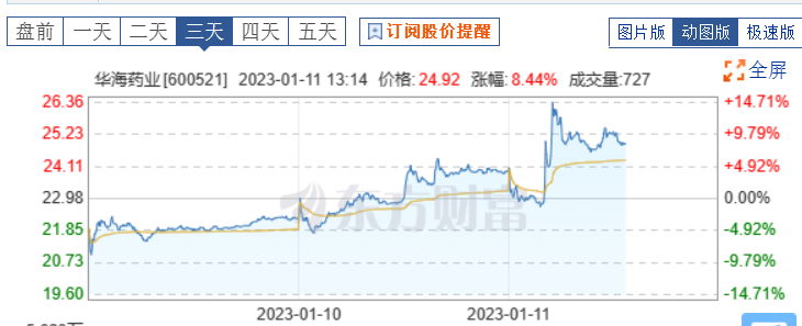 此消息一出华海药业股价昨日应声上涨,1月10日,华海药业盘中大涨,一度逼近涨停,截至当日收盘涨幅达7.73%。1.11日发稿前当日再度上涨逾4%。