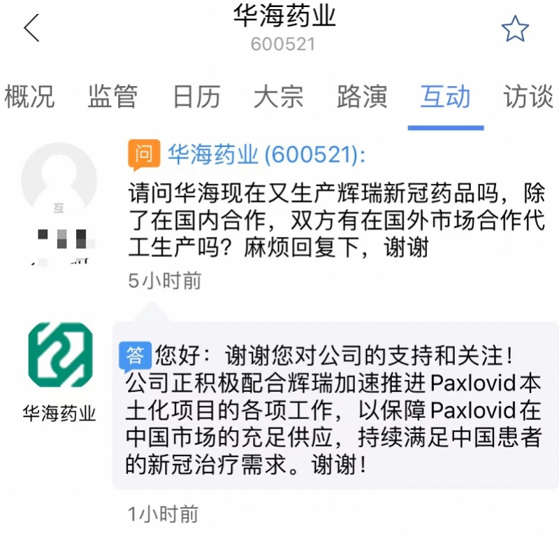 据上述合作内容,华海药业生产的为Paxlovid原研药,而非仿制药。华海药业相关人士面对媒体访时曾说道“目前我们公司正配合辉瑞加速推进Paxlovid本地化生产项目的各项工作,以保障Paxlovid在中国市场的充足供应,持续满足中国患者的新冠治疗需求。”