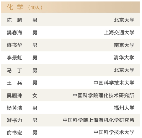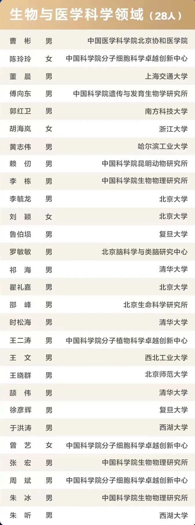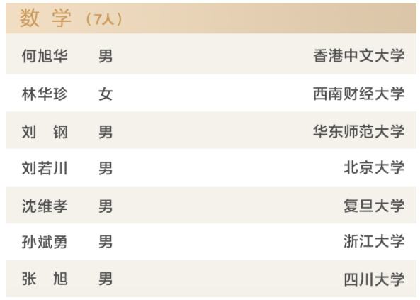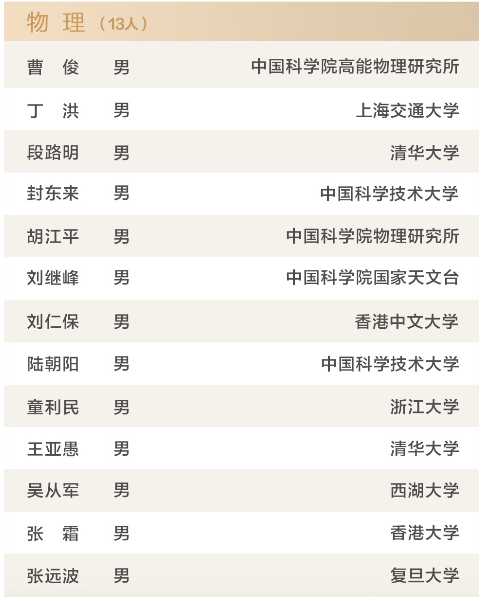 资助的领域分为数学、物理、化学和生物医学,此次受到资助的学者名单如下: