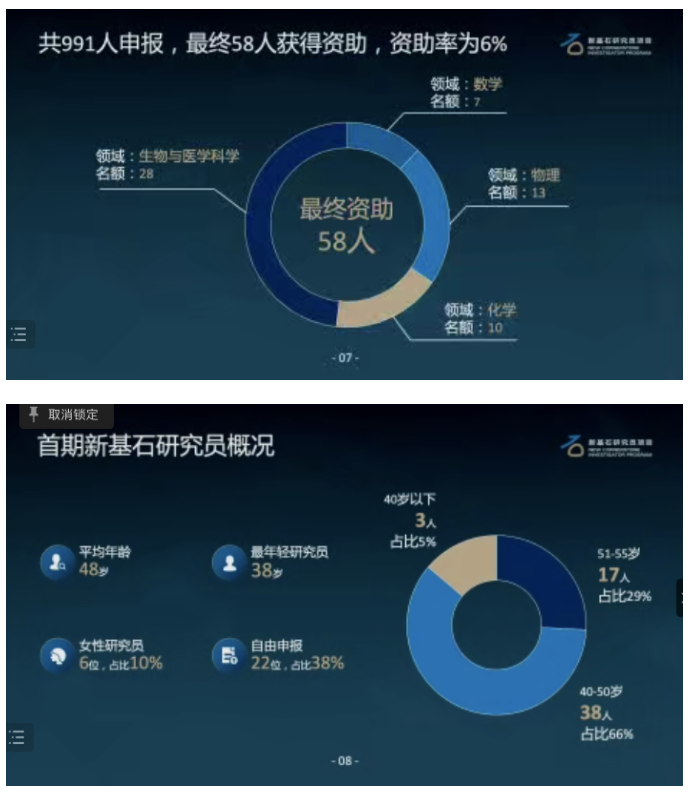 2023年1月13日,西湖大学校长、“新基石研究员项目”首届科学委员会主席施一公等人宣布了首期资助名单,项目共吸引了991名学者报名申请,最终58人折桂。