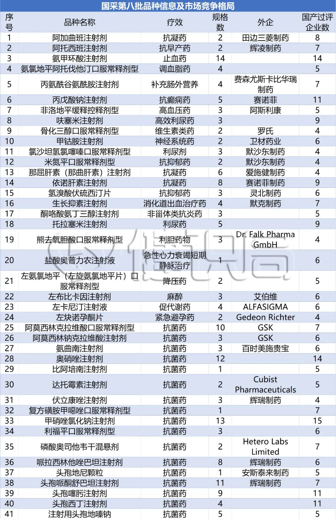 另外,第八批集采也会迎来外企原研厂家的竞争。据健识局统计,至少有26个品种有外企申请在国内获批,如辉瑞、赛诺菲、默沙东、阿斯利康等。