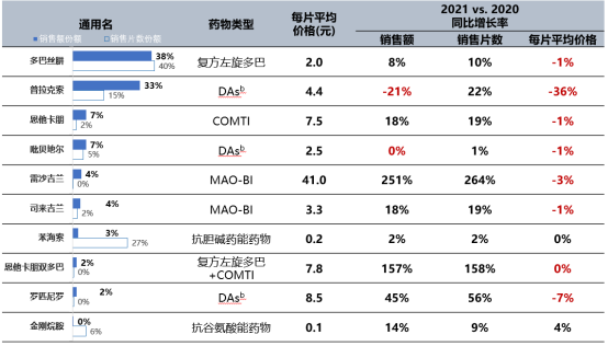02 国内品种集中度高复方左旋多巴增长领跑市场