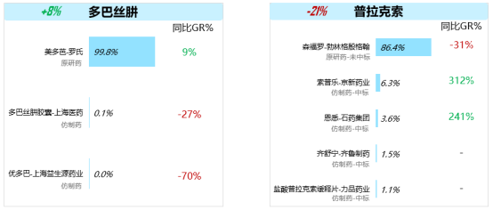 全国-两大渠道-普拉克索-未中标原研药/中标仿制药市场表现