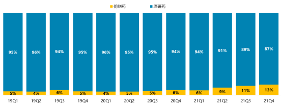 按照集采的执行情况来看,普拉克索市场中带量采购余量基本由原研药森福罗占据,零售渠道和B2C渠道成为原研药重点发展的市场。2021Q2后普拉克索原研药在零售渠道和B2C渠道销售额规模持续提升,中标仿制药规模小幅提升,但目前并未影响原研药在院外市场垄断的局面。