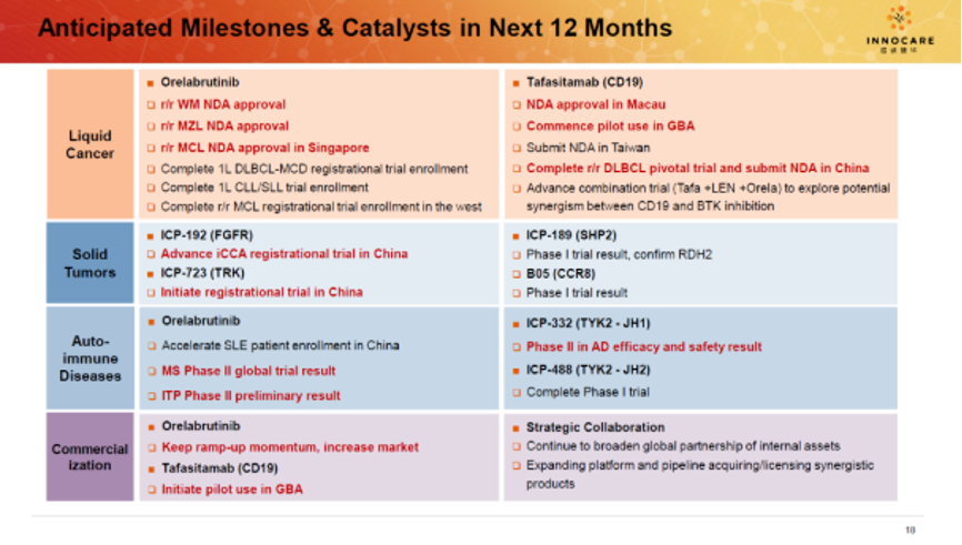 目前,诺诚健华在血液瘤、实体瘤、自身免疫性疾病领域有13款产品正处于临床开发阶段,包括BTK抑制剂、抗CD19单抗、靶向蛋白降解剂、BCL2抑制剂、SHP2变构抑制剂等。