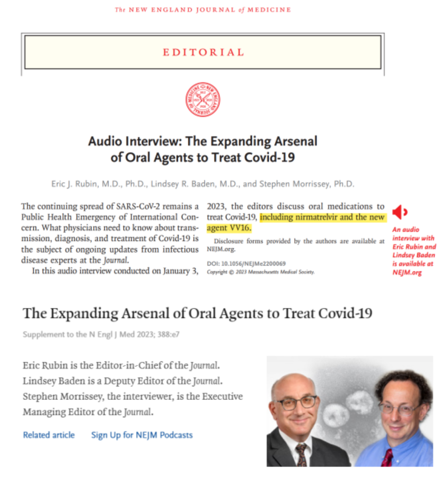 1月5日《新英格兰医学杂志》(NEJM)又刊发了一个专访,标题为:扩大治疗新冠的口服药物库(The Expanding Arsenal of Oral Agents to Treat Covid-19)。