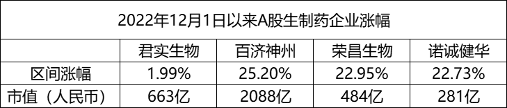 从A股12月初的走势来看,君实生物的走势明显弱于生物制药企业中的百济神州、荣昌生物,拥有一定的补涨潜力。