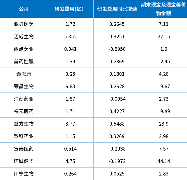 由于刚刚上市,从A股市场募集到足够多的资金,13家创新药企均不存在现金流吃紧的问题。