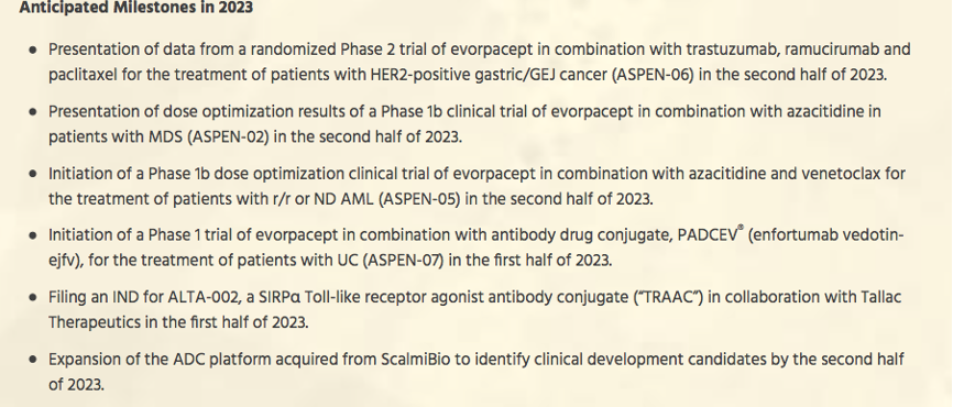 1月5日,ALX Oncology早早预告了其CD47单抗,在2023年的潜在里程碑节点。