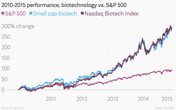 2010到2014,生物科技股的涨幅超过了美国市场的任何其他板块。2014年,医疗行业的 IPO 和并购支出均创下新纪录,不仅仅是因为新技术,还因为随着现有专利到期,以及研发成本不断攀升,许多全球大型制药公司迫切需要创新药物。