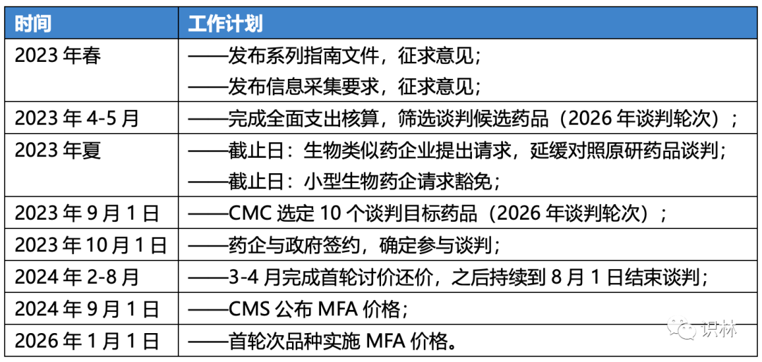 CMS打算在2024年9月1日完成谈判,并在2026年1月1日实施第一轮品种的谈判价格。