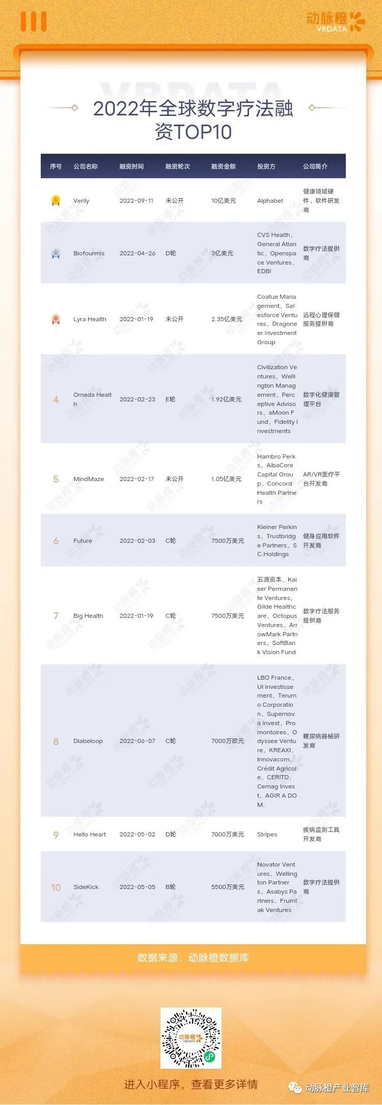 二.2022年全球数字疗法领域融资TOP10
