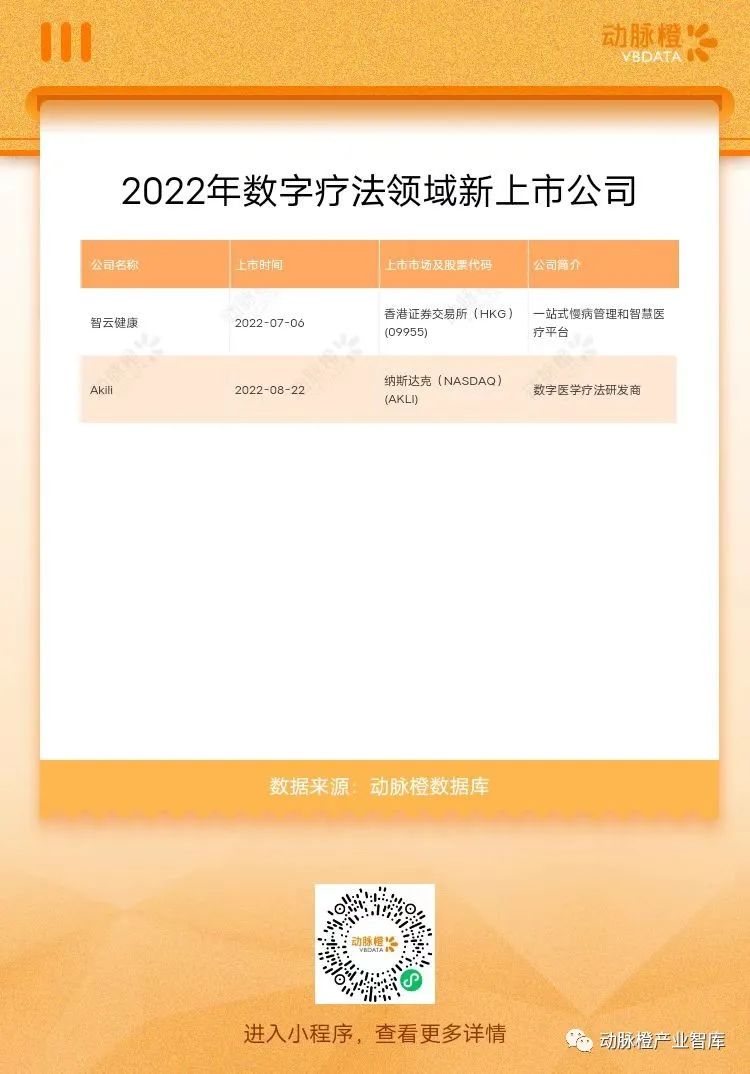 三.2022年数字疗法领域新上市公司