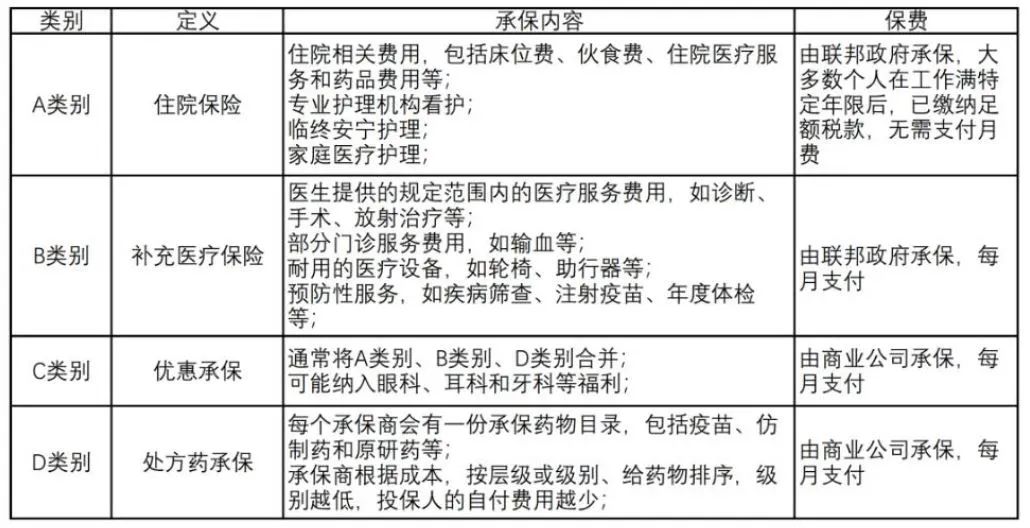 在这里补充介绍一下美国的医疗保险结构,不同于中国的国家医保,美国的国家医保Medicare,又称老年保健医疗制度,仅为65岁以上的老人提供服务。Medicare分为A/B/C/D四个部分,对应不同的医疗服务和承保比例,其中Part D是处方药承保。