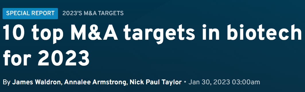 [1] 10 top M&A targets in biotech for 2023. Retrieved January 30, 2023, from https://www.fiercebiotech.com/special-reports/top-10-ma-targets-biotech-2023