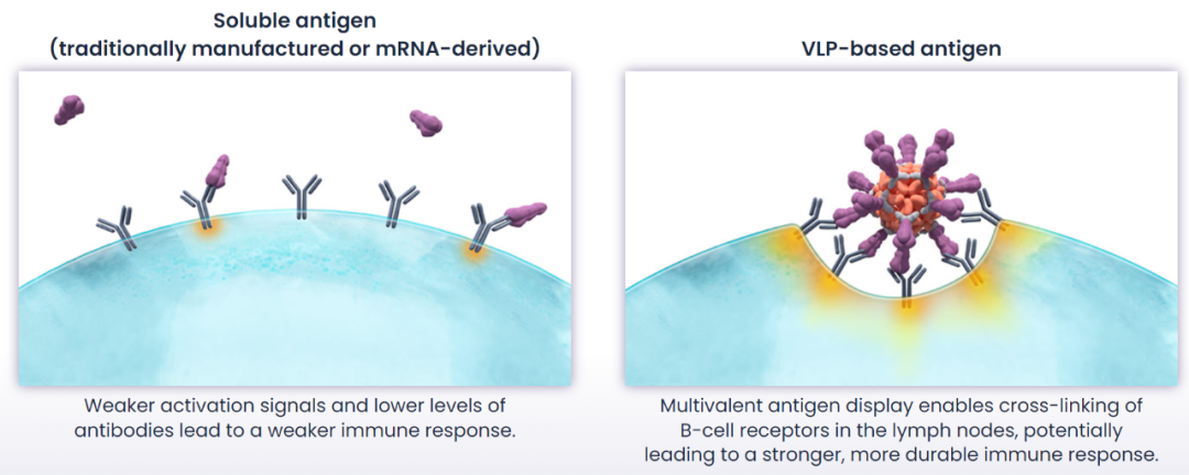 ▲基于VLP的抗原呈递与可溶性抗原在激发免疫反应方面的差异(图片来源:Icosavax公司官网)