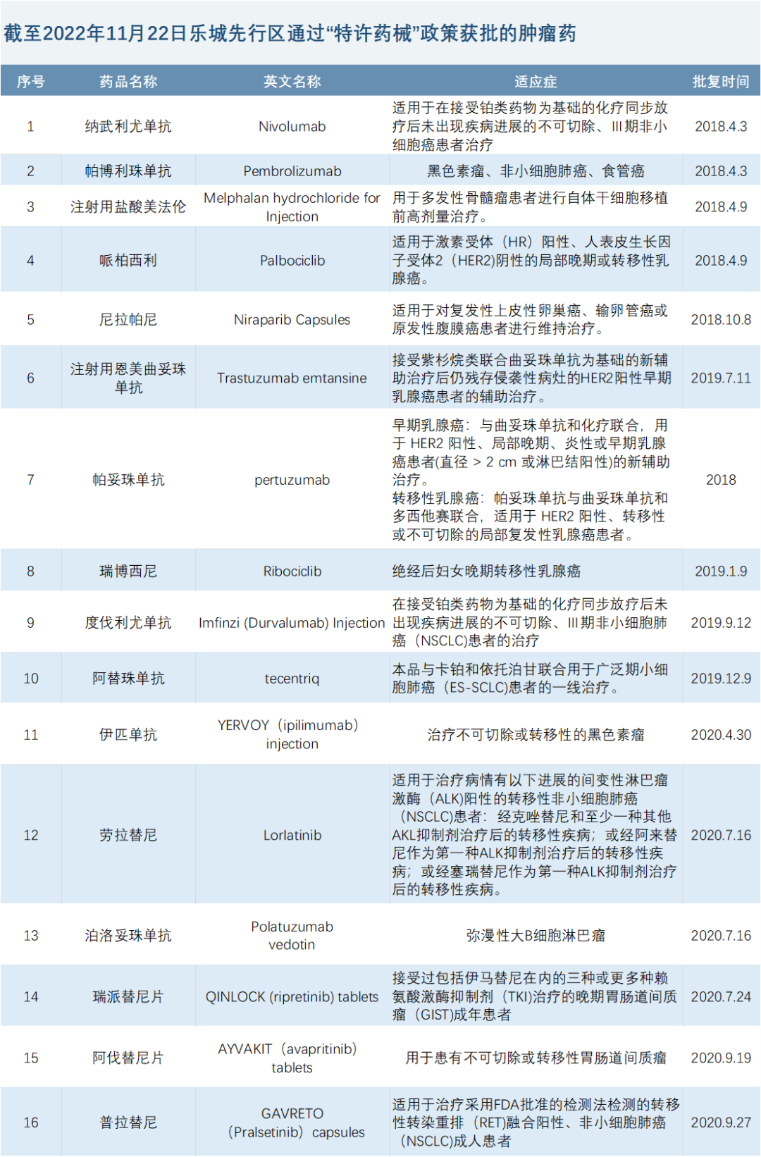 Blueprint Medicines开发的普拉替尼(pralsetinib)于2020年9月被美国FDA批准用于RET融合阳性、非小细胞肺癌成人患者。Blueprint Medicines早在2018年6月就把普拉替尼的大中华临床和商业化权益独家授权给中国生物技术公司基石药业。2020年9月底美国FDA刚刚批准普拉替尼,基石药业就通过“特许药械”政策将普拉替尼同步引入乐城先行区。第一张处方和美国几乎同一天开出,成为乐城首个当月同步落地的全球新药。