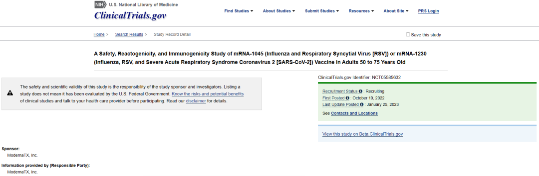 ▲ Moderna RSV疫苗临床 图源:clinicaltrials