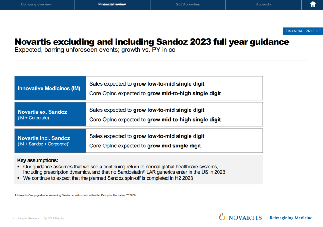 诺华山德士 2023 财务指导
