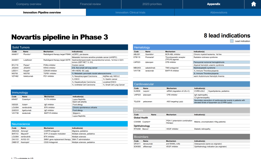 附诺华 III 期临床管线: