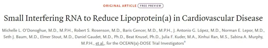 安进在去年11月公布其siRNA疗法olpasiran(曾用名AMG 890)于患有动脉粥样硬化性心血管疾病(ASCVD)患者的疗效与安全性积极数据。分析显示,这些患者的脂蛋白a——Lp(a)水平相当高,但在接受每12周75 mg或更高剂量olpasiran注射治疗后,与安慰剂组相比,在第36周时患者的Lp(a)水平产生95%或以上的下降。此结果亦同时发表于《新英格兰医学杂志》当中。目前安进已经启动olpasiran的随机双盲、多中心临床3期试验,进一步检视olpasiran对ASCVD患者产生心血管事件的影响。