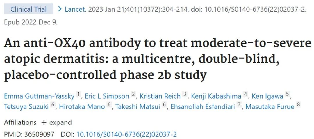 Rocatinlimab(AMG 451 / KHK4083)是一款靶向OX40蛋白的潜在“first-in-class”单克隆抗体。在去年12月所公布的多中心、双盲2b期临床试验结果显示,中重度特应性皮炎患者在接受rocatinlimab皮下注射16周后,患者的特应性皮炎严重程度具有渐进式、显著的改善,且大多数患者在停止治疗后,治疗结果仍持续维持。此试验结果已发布于《柳叶刀》杂志当中。目前此药物的ROCKET临床3期试验,针对中重度特应性皮炎成人与青少年病患的招募正在进行中。