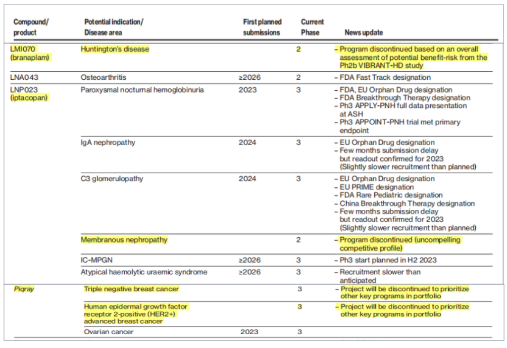 除此之外,诺华其它管线也进行了更新:
