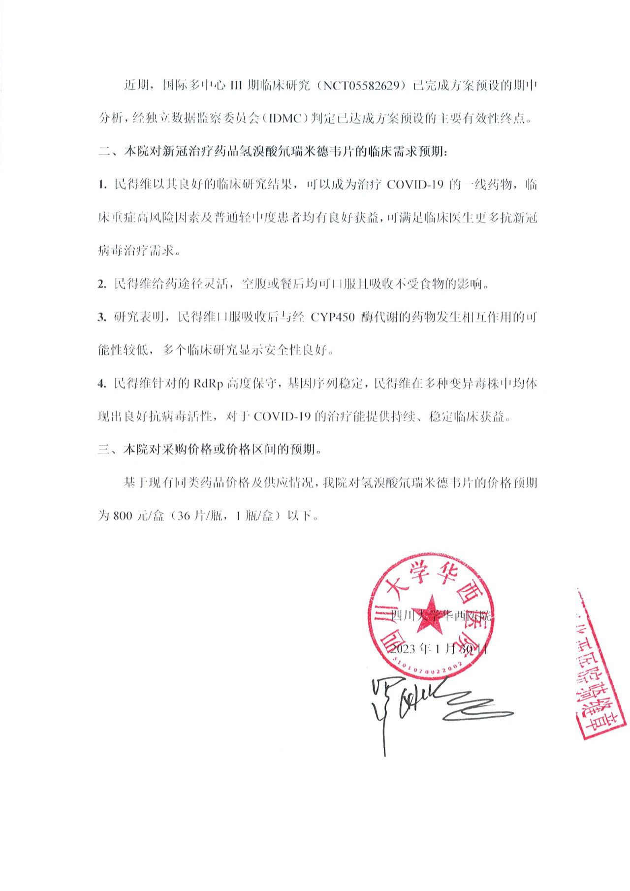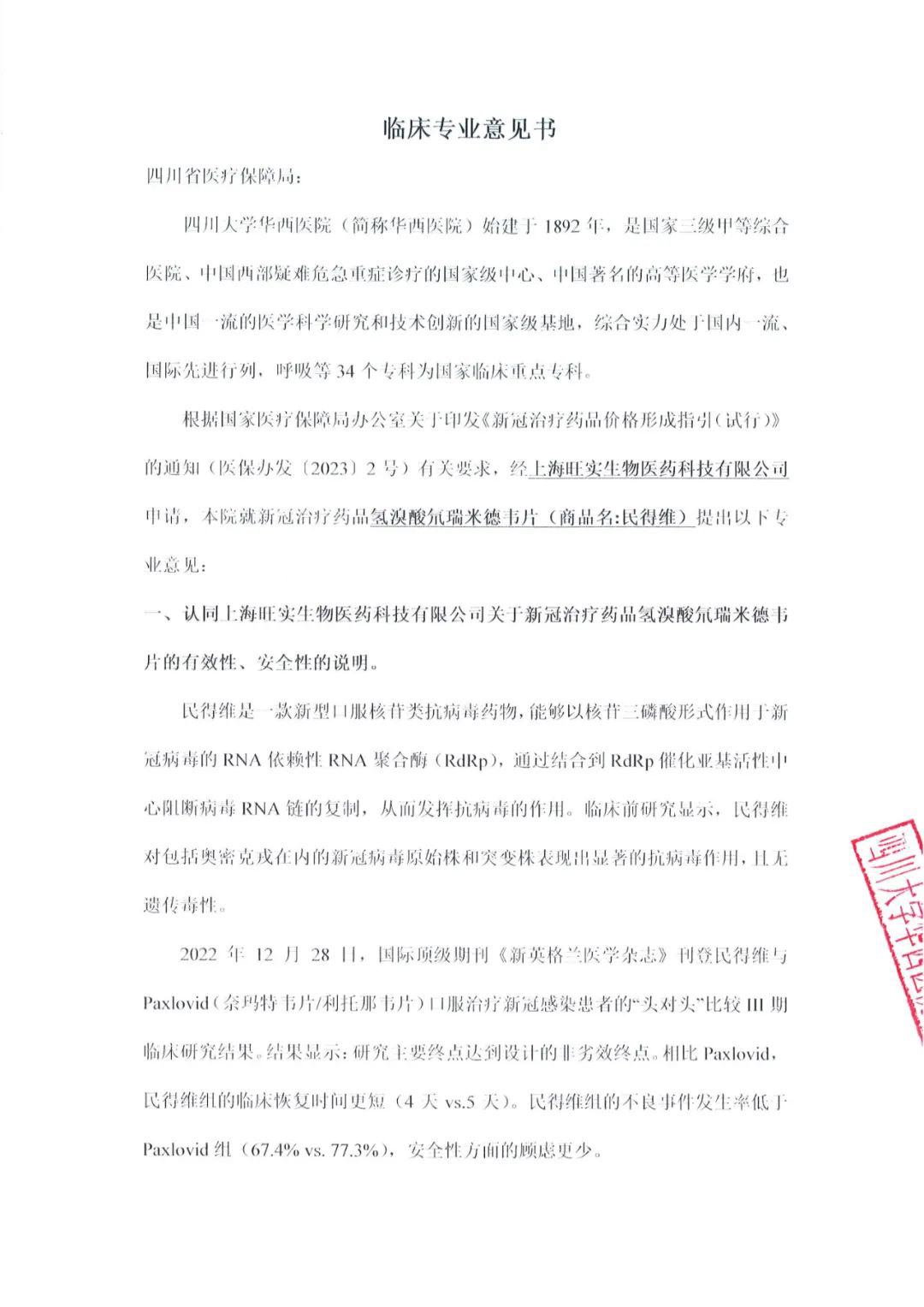 附公示相关信息:氢溴酸氘瑞米德韦片临床专业意见书和氢溴酸氘瑞米德韦片行业协会推荐书