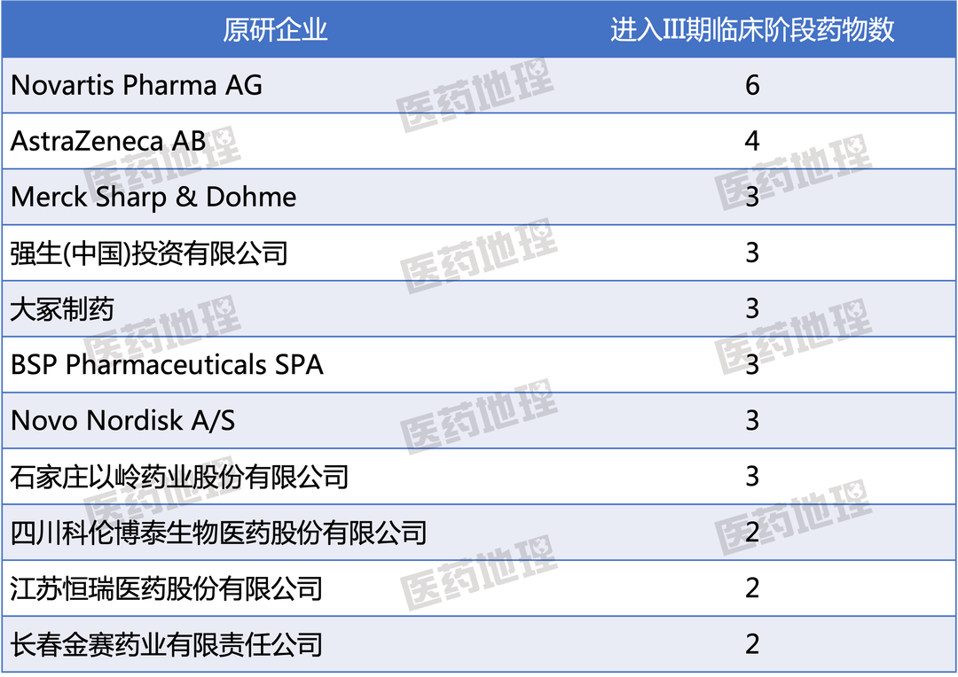 表1:2022年首次进入III期临床创新药数量TOP企业
