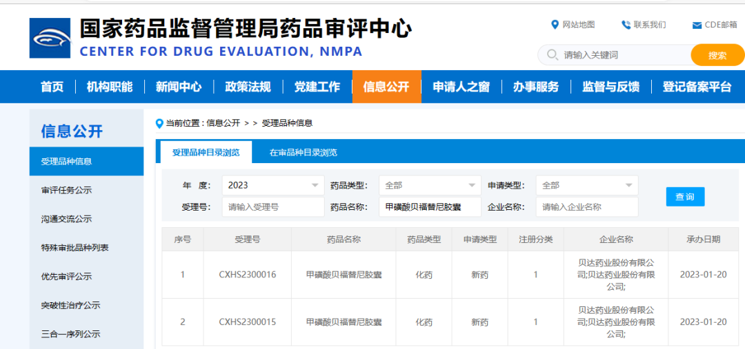 1月20日,贝达药业递交其1类新药甲磺酸贝福替尼胶囊上市申请并获NMPA受理。