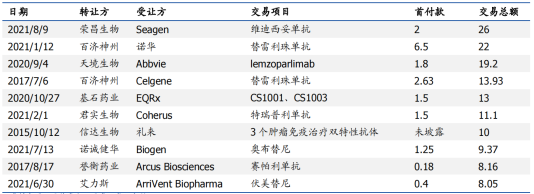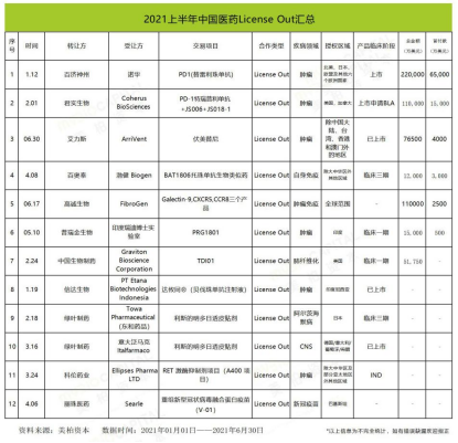 ▲2021年上半年中国医药License-out汇总 来源:美柏资本