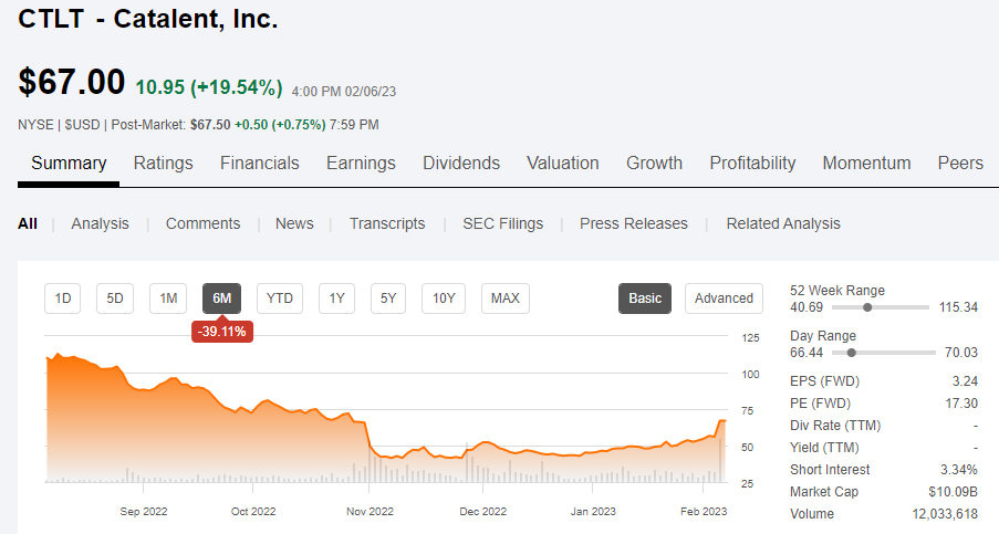 Catalent股价近半年持续下滑,2022年11月30日,据外媒报道,Catalent正在马里兰州、德克萨斯州和印第安纳州布卢明顿的主要制造厂裁减约600个职位。