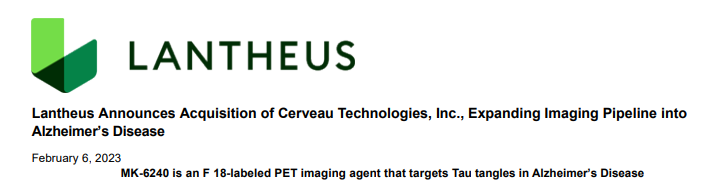 2023年1月6日,Lantheus Holdings宣布已收购 Cerveau Technologies,一家利用分子成像帮助开发治疗阿尔茨海默病和其他认知障碍疗法的公司。