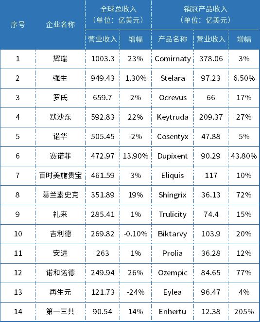 辉瑞以1003.3亿美元的营收登顶跨国药企2022年业绩TOP 1,同时也是全球全年营收突破千亿美元大关的药企。与去年一样,在辉瑞的“成绩单”中,超半成业绩由新冠业务贡献,这部分销售收入达到567.39亿美元。其中,新冠疫苗Comirnaty全年营收达到378亿美元,新冠药物Paxlovid全年营收为189.33亿美元。