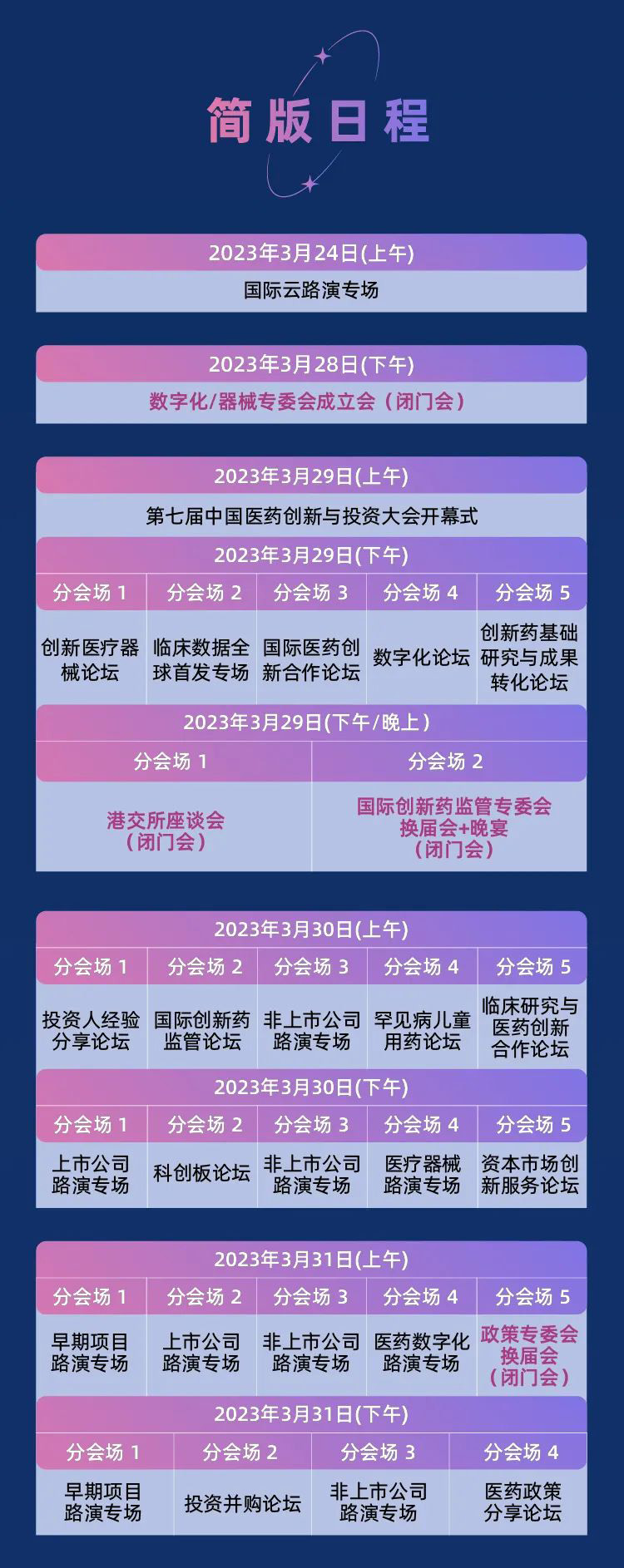 新版日程将于近期公布,敬请关注「中国医药创新与投资大会」公众号,第一时间获取最新资讯。