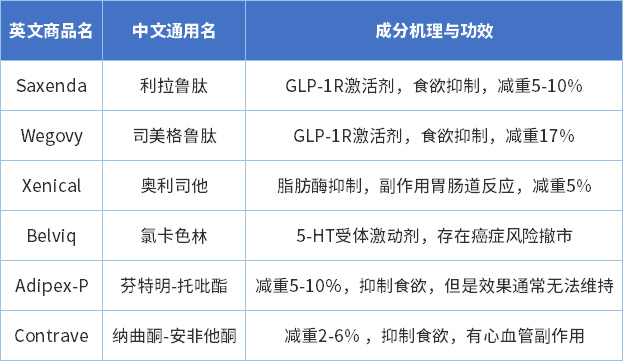 包括利拉鲁肽(Victoza)和索马鲁肽降糖针(Ozempic)等,同为处方药。此外,还有其他几种处于后期开发阶段的药物可能在未来几年进入市场。