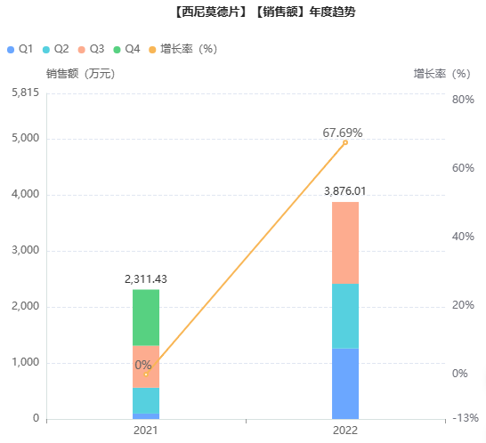 2020年,国家药品监督管理局通过优先审评审批程序批准Novartis Pharma AG申报的1类创新药西尼莫德片(商品名:万立能)上市,用于治疗成人复发型多发性硬化。药融云全国医院销售数据库显示,2022年前三季度西尼莫德销售额已远超2021年总额,同比增长了196%。