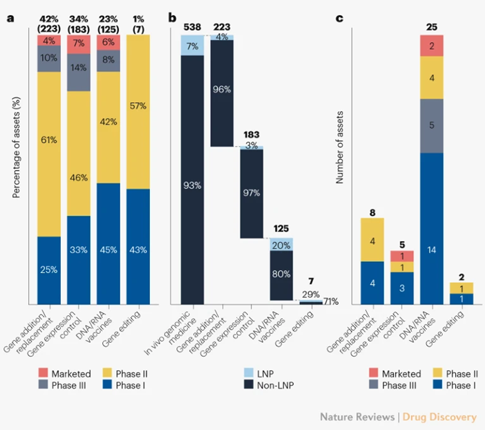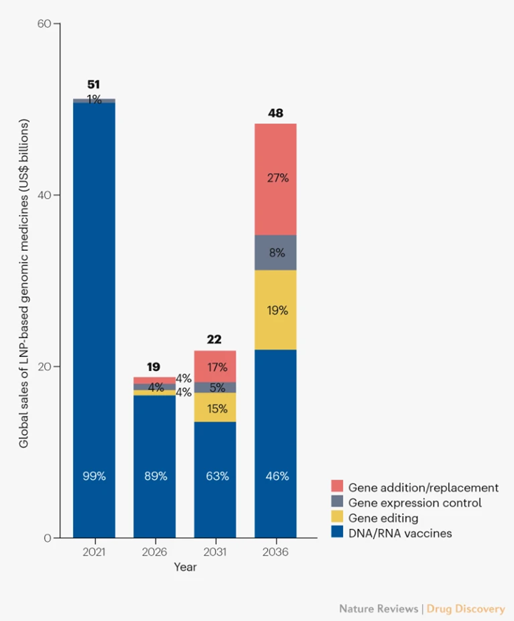 基于LNP的体内基因组学药物市场份额(来源:Nature Reviews Drug Discovery)