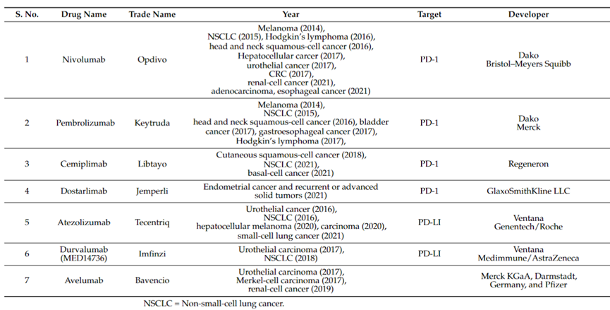 Alkholifi FK, Alsaffar RM. Dostarlimab an Inhibitor of PD-1/PD-L1: A New Paradigm for the Treatment of Cancer. Medicina (Kaunas). 2022 Nov 1;58(11):1572.